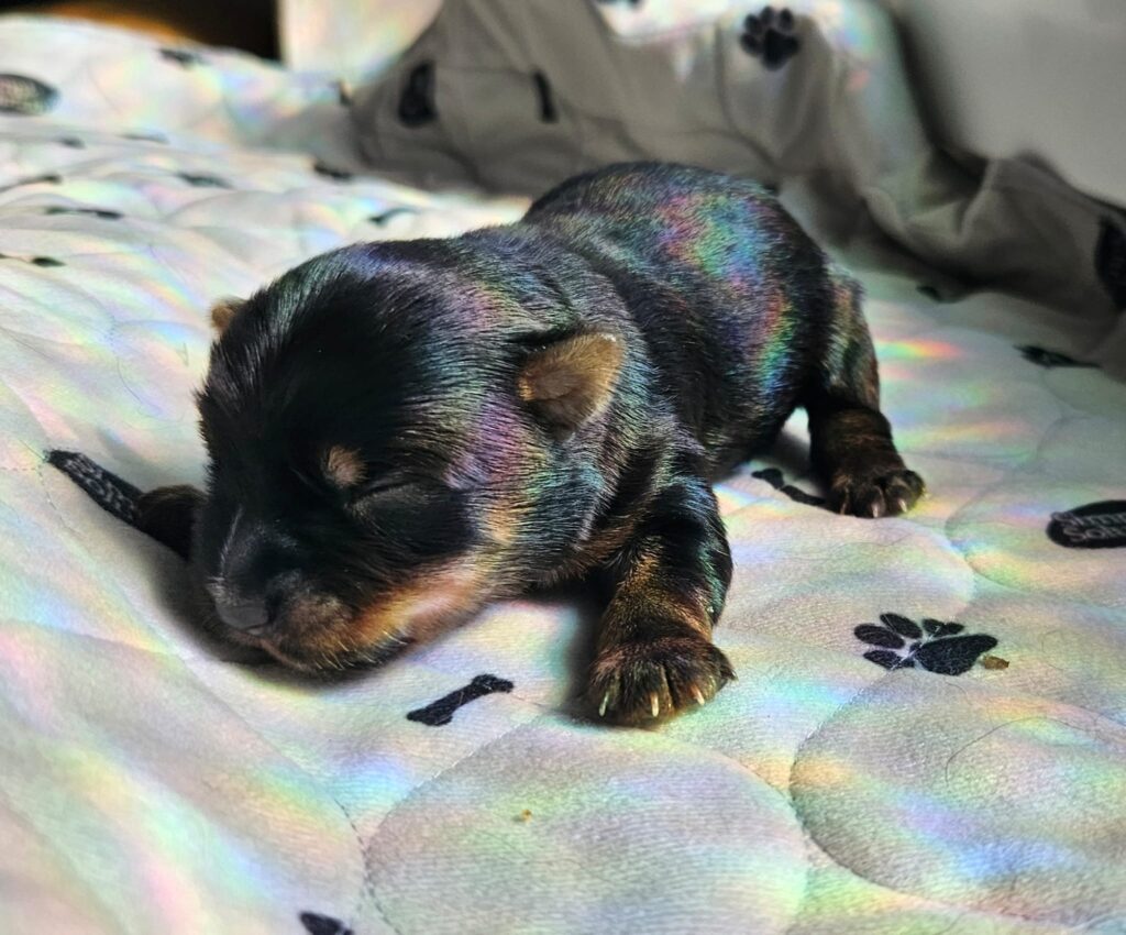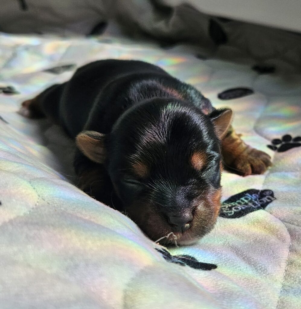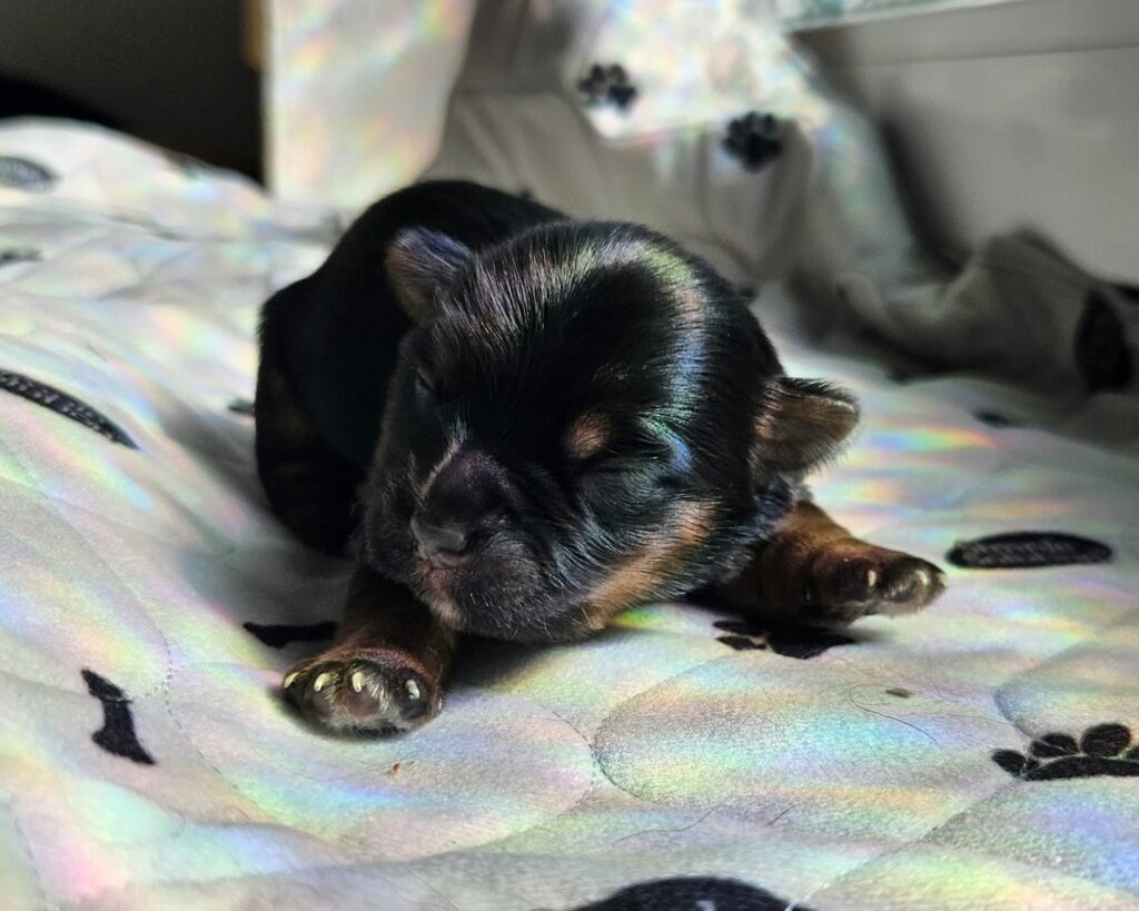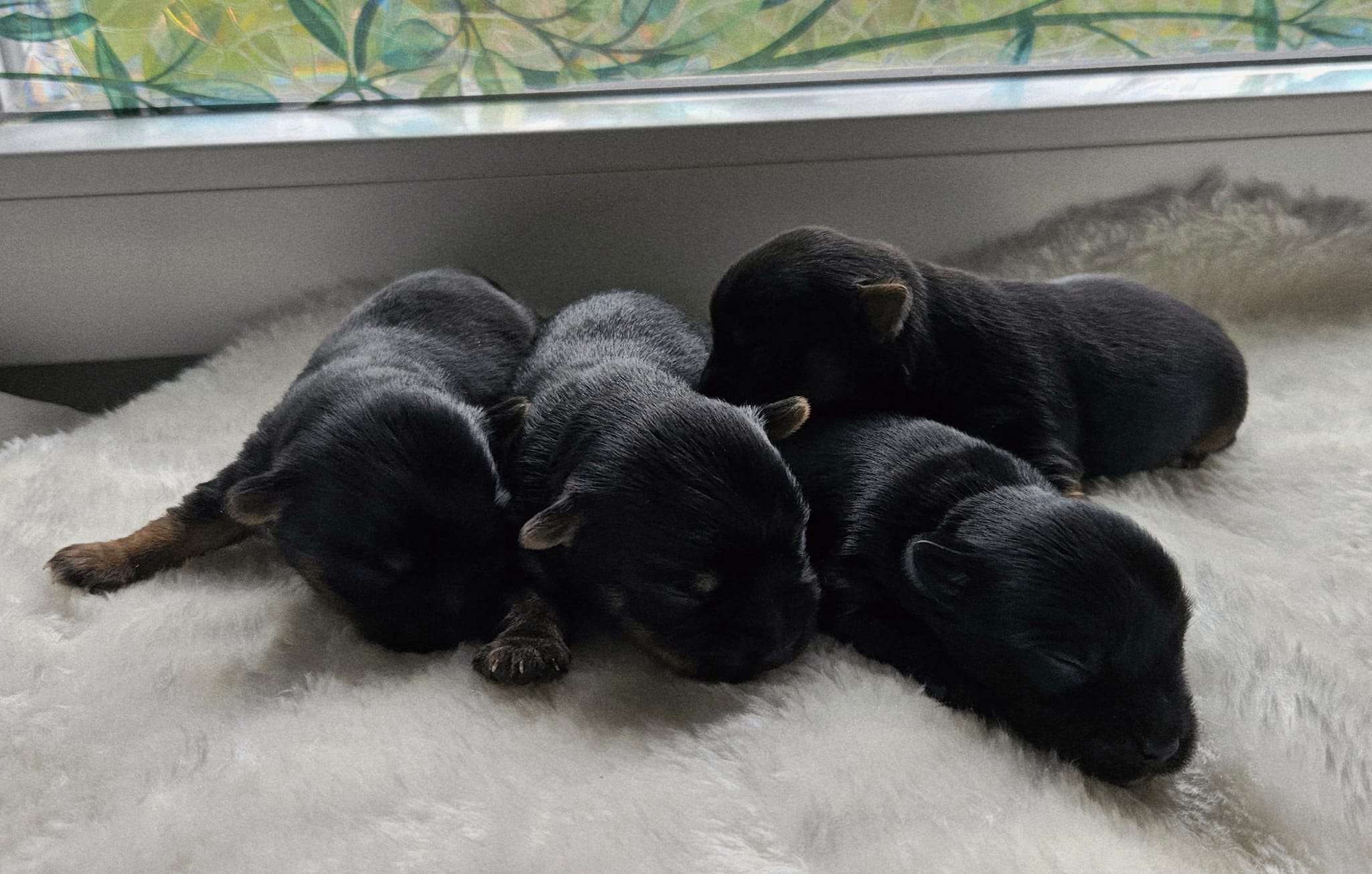 Der C-Wurf mit vier gesunden Rüden. Drei Black and Tan und ein kleiner Schwarzer mit weißer Brust